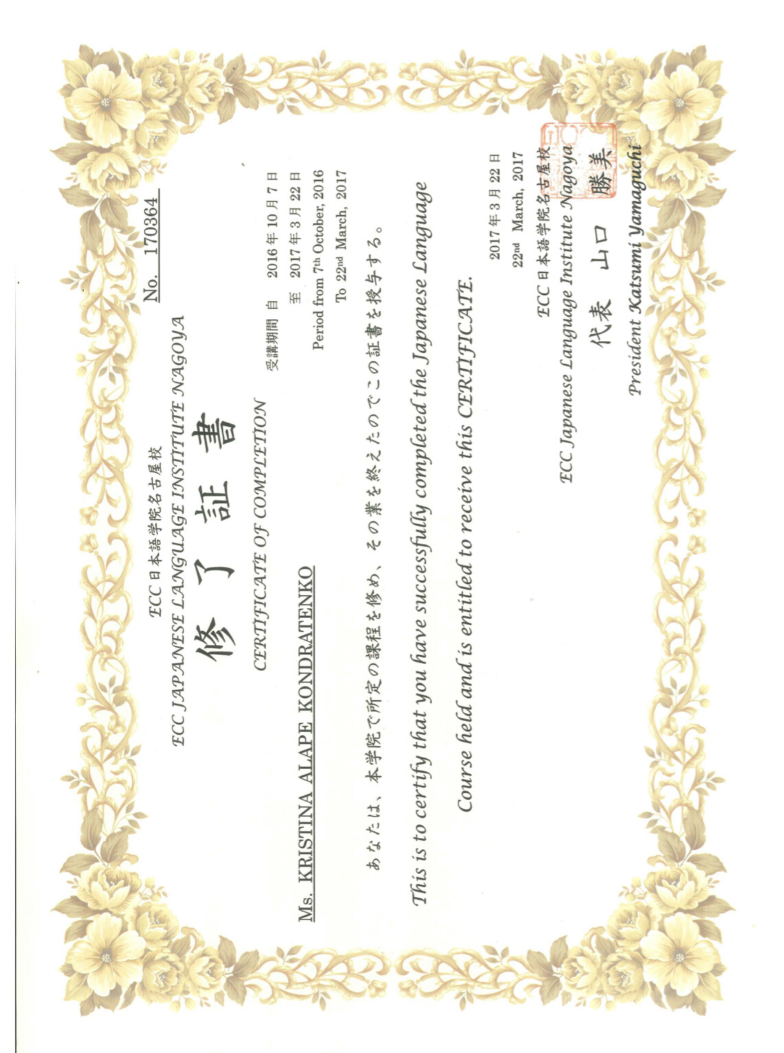 — Работала и училась в Японии (ECC Japanese Language Institute Nagoya).